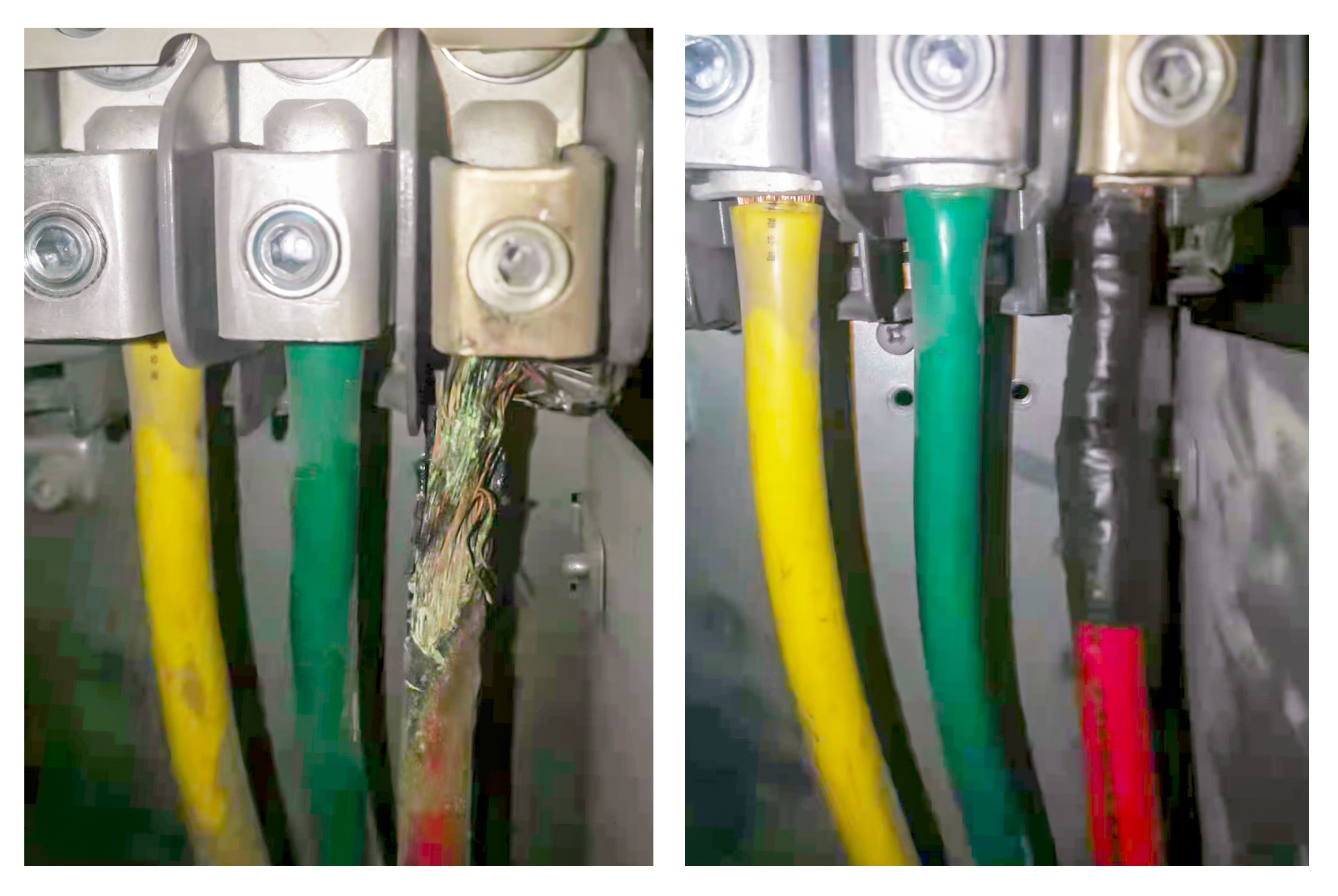 2月3日,電氣專業(yè)賈惠烽、強(qiáng)月龍?jiān)诔制睓z查#4爐F磨分離器控制柜時(shí),發(fā)現(xiàn)柜內(nèi)電動(dòng)機(jī)出線端子C相電纜絕緣皮燒毀,立即逐級上報(bào)并重新恢復(fù)電纜絕緣,緊固端子螺絲,全面檢查確保柜內(nèi)其他回路完好無損,避免了因絕緣破損引發(fā)磨煤機(jī)分離器控制柜著火及磨煤機(jī)電動(dòng)機(jī)、變頻器損壞等影響機(jī)組安全運(yùn)行的重大事故。