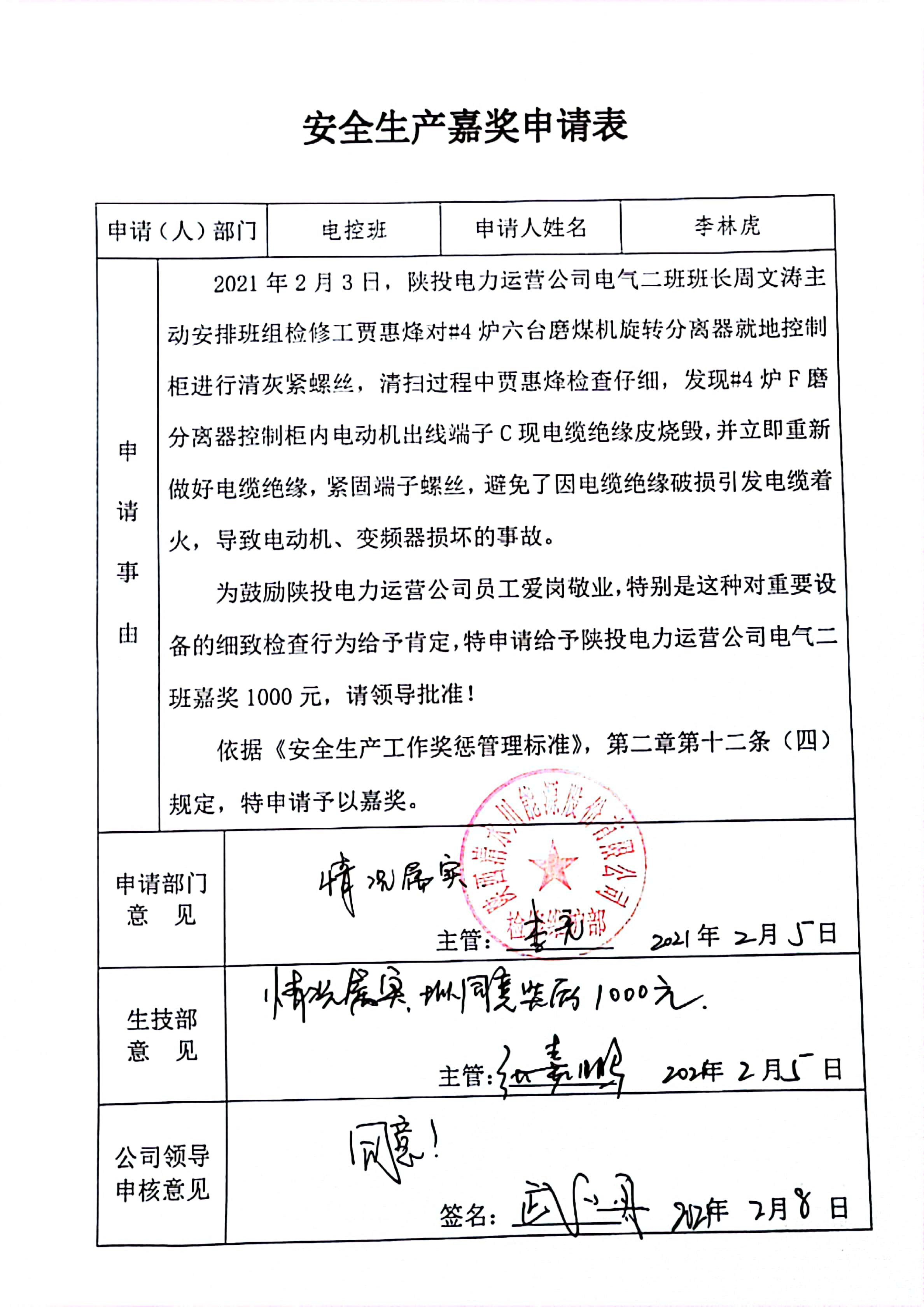 2021年2月1日,清水川#4機(jī)組臨停搶修,電氣二班在完成缺陷消除和點(diǎn)檢安排的工作外,主動出擊,對磨煤機(jī)分離器控制柜、空預(yù)器漏風(fēng)系統(tǒng)控制柜、除塵PC段開關(guān)柜等進(jìn)行清掃檢查,并發(fā)現(xiàn)#4爐F磨煤機(jī)分離器控制柜內(nèi)電動機(jī)出線端子C相電纜絕緣皮燒毀的缺陷。班組立即做出相應(yīng)措施,重新做好電纜絕緣,并緊固端子,避免了因電纜絕緣破損引發(fā)電纜著火,導(dǎo)致電動機(jī)、變頻器燒毀的危險(xiǎn),得到了業(yè)主方的認(rèn)可和贊揚(yáng)。