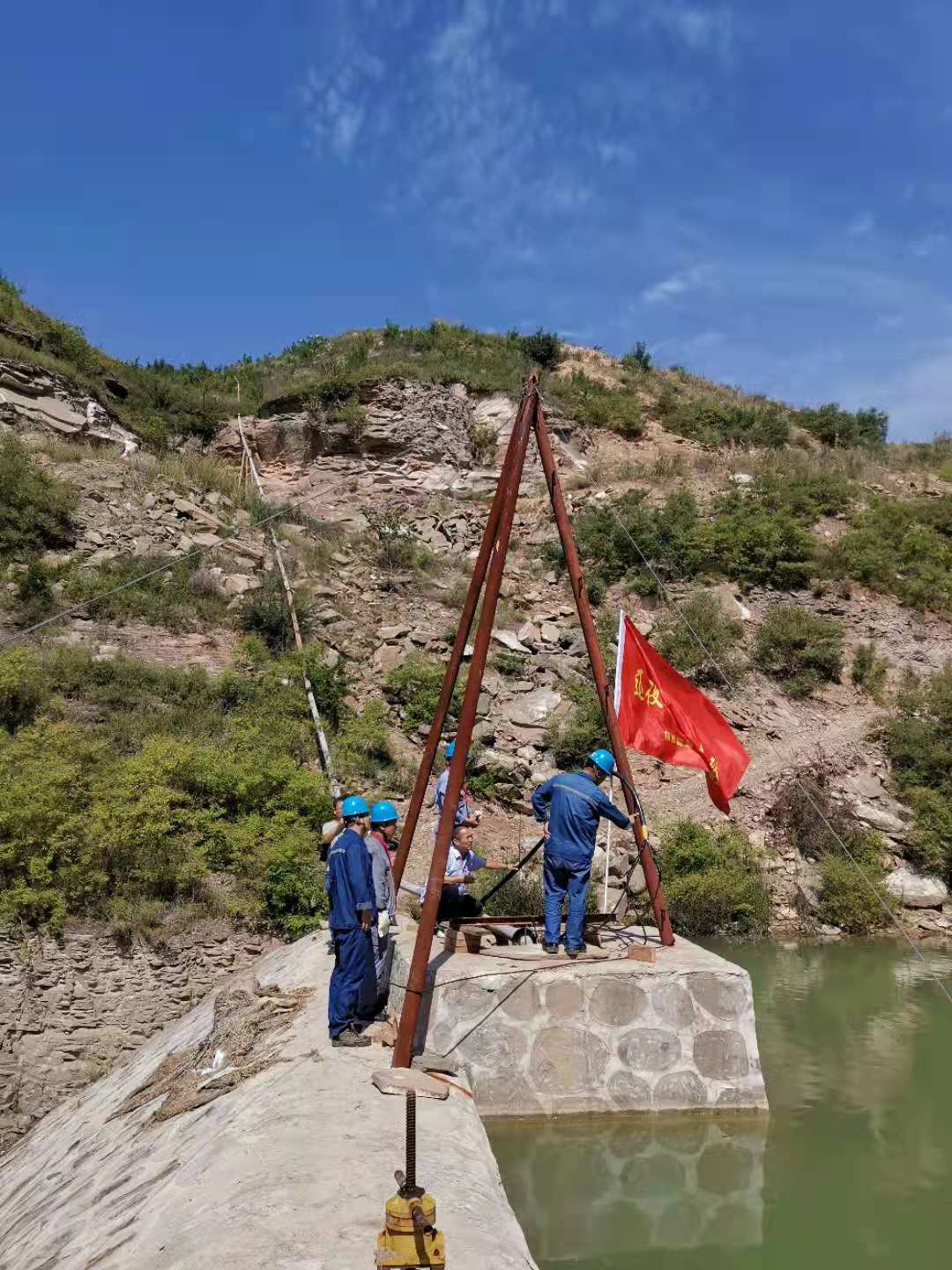 到了溝底,查設(shè)備,巡線路,找問(wèn)題,隊(duì)員們馬不停蹄投入搶修工作。頭頂著火辣辣的太陽(yáng),眼前雖是一汪碧水,可溝里一絲風(fēng)也沒(méi)有,溫度超過(guò)40℃。人站在河壩上即使不干活,一會(huì)兒就汗流浹背,頭暈?zāi)垦!9ぷ髦?,大家不時(shí)抹一把臉上、身上的汗,開(kāi)玩笑說(shuō):“魚(yú)在下面的河水里游泳,我們?cè)诎渡系暮顾镉斡??!笨蔀榱舜蛲ㄟ@條關(guān)乎全村的“生命線”,大家臨深淵,沒(méi)有一個(gè)人臨陣退縮;涉險(xiǎn)灘,始終沒(méi)有一句怨言。