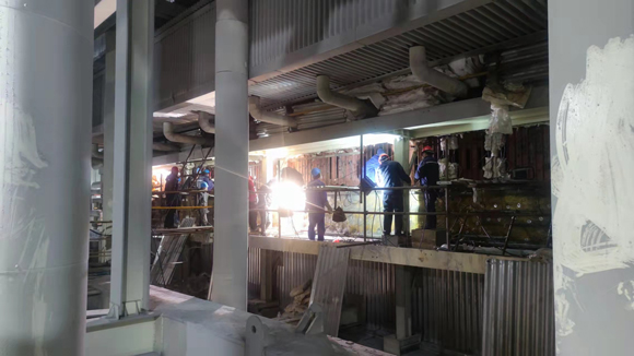 項(xiàng)目部全體職工與時(shí)間賽跑,與安全同行,與進(jìn)度拼搏。安全專工每天不定時(shí)到各個(gè)專業(yè)面進(jìn)行檢查,堅(jiān)持對一切違章行為“零容忍”。寂靜的廠房里熱鬧非凡,工作人員拉倒鏈的拉倒鏈,卸螺絲的卸螺絲,“一二、一二”的號子聲飄蕩在檢修現(xiàn)場。大家顧不得擦拭臉上的汗水,用心、用情、用勁做好每一個(gè)細(xì)節(jié)。一個(gè)個(gè)忙碌的身影,一張張雖然疲憊但依然光彩照人的臉龐,構(gòu)成了一幅美麗畫卷。
