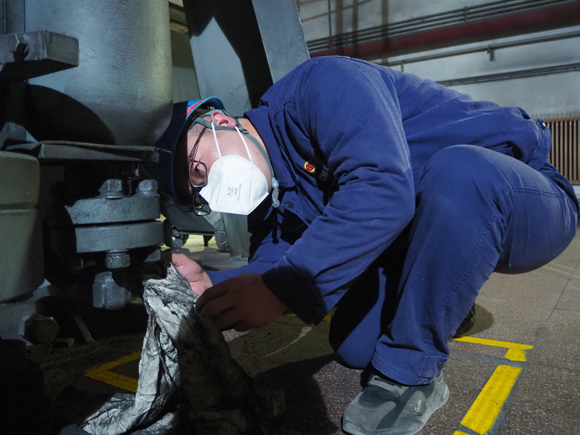 在檢修現(xiàn)場,各種管道“叢林”、大大小小的設(shè)備中,點綴著反光條的“運營熒光藍(lán)”隨處可見。各班組深入貫徹落實公司“質(zhì)量提升年”要求,深化設(shè)備精細(xì)化管理,做到每個環(huán)節(jié)“回頭看”確保質(zhì)量,班后做好工作面的現(xiàn)場清理確保整潔。
