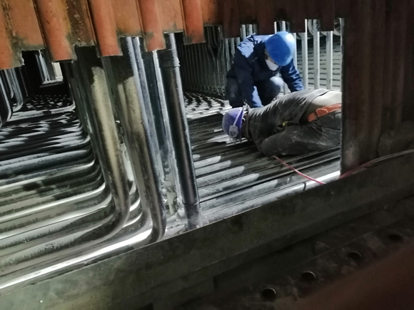 為保證主線工作尤其是受熱面泄漏搶修工作按期保質(zhì)完成,項目部周密部署、精心組織,緊扣時間節(jié)點分解細(xì)化任務(wù),根據(jù)爐膛泄漏部位特點制定詳細(xì)的搶修技術(shù)措施和安全措施,并要求鍋爐專業(yè)將人員進行合理分配,做好交接班記錄,保證搶修工作不因交接班出現(xiàn)紕漏。項目部負(fù)責(zé)人鉆進爐膛,實地查看泄漏部位、泄漏面積,詳細(xì)統(tǒng)計泄漏管子數(shù)量及材質(zhì)。