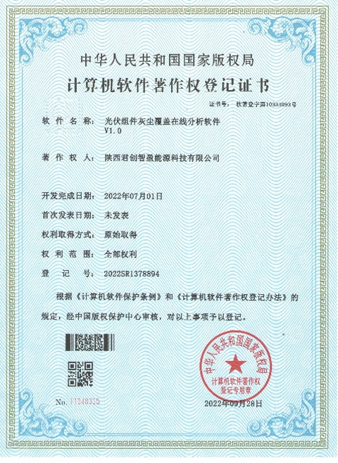日前,由君創(chuàng)科技牽頭研發(fā)的“光伏組件灰塵覆蓋損耗在線分析系統(tǒng)及自動清洗系統(tǒng)產(chǎn)品”獲得國家版權(quán)局授權(quán)的計算機(jī)軟件著作權(quán)登記證書,填補了公司在新能源智慧化自主研發(fā)領(lǐng)域的空白。