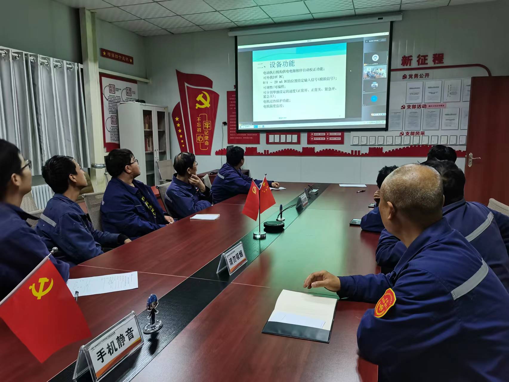 趙石畔項(xiàng)目部開(kāi)展“西博思執(zhí)行器設(shè)置及常見(jiàn)故障處理”視頻培訓(xùn),麟北項(xiàng)目部、商洛項(xiàng)目部?jī)x電專(zhuān)業(yè)參加培訓(xùn)。