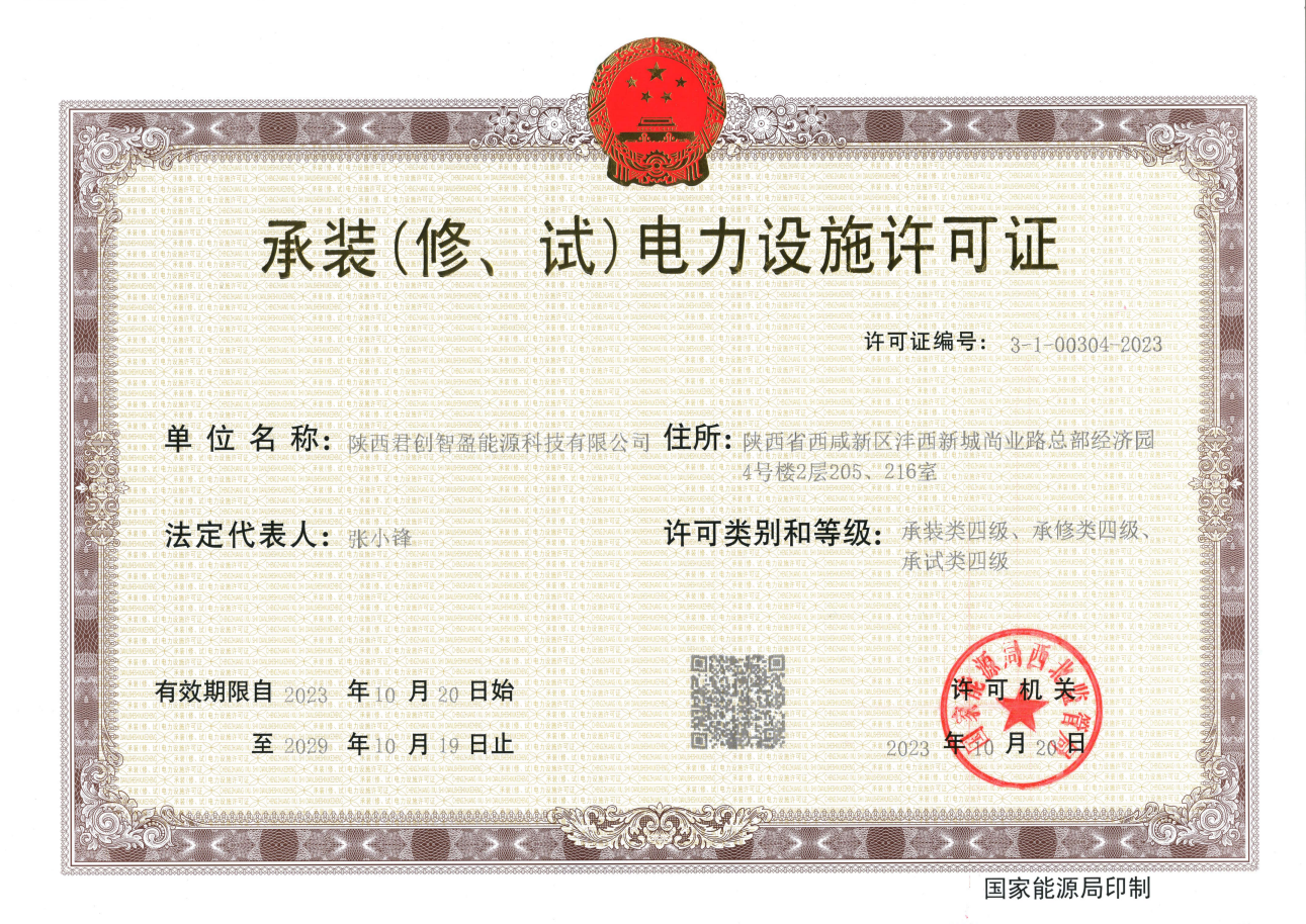 近日,經(jīng)國(guó)家能源局西北監(jiān)管局審核批準(zhǔn),君創(chuàng)科技成功獲得“承裝(修、試)電力設(shè)施許可證”資質(zhì)。