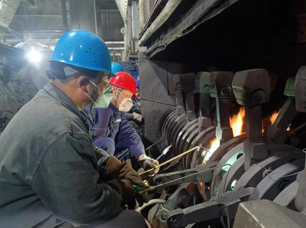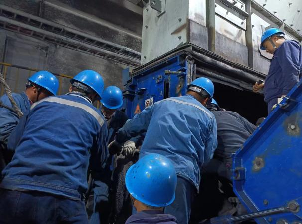 搶修方案確定后,兩組人員接續(xù)戰(zhàn)斗,展開(kāi)搶修。在轟鳴的機(jī)器聲中,在粉塵彌漫的細(xì)碎煤機(jī)室內(nèi),大家搶時(shí)間、爭(zhēng)進(jìn)度,經(jīng)過(guò)42小時(shí)鏖戰(zhàn),于12日凌晨5時(shí)許結(jié)束搶修,共完成20枚錘臂的拆除、回裝及9枚錘頭更換工作。
