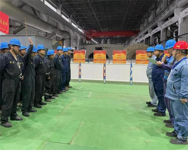 “今天繼續(xù)進(jìn)行高壓缸研磨、推力瓦修刮工作,下面我宣讀安全、質(zhì)量、工期目標(biāo)……”在#5機(jī)汽機(jī)本體檢修前,工作負(fù)責(zé)人進(jìn)行標(biāo)準(zhǔn)化“兩交底”流程,“上缸人員必須穿著上缸專用工作服,所用工器具須系安全繩;動火作業(yè)要落實好安全措施,備好滅火器,鋪好防火毯;缸內(nèi)孔洞臨時封堵要用咱們定制的專用布包,做好編號記錄,把好安全‘頭道關(guān)’。”