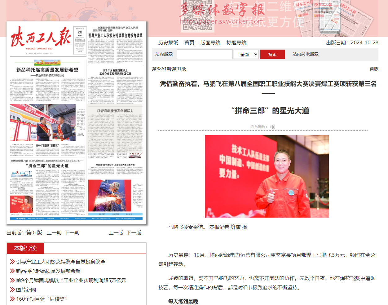 備戰(zhàn)第五屆陜西省國有企業(yè)職工技能大賽期間,馬鵬飛幾乎將所有時間都投入到焊接技術(shù)鉆研和實踐上,不斷攻克技術(shù)難關(guān),通過實戰(zhàn)積累了豐富的經(jīng)驗。正是這份努力和堅持,最終獲得焊工組亞軍,被授予“陜西省技術(shù)能手”稱號。
