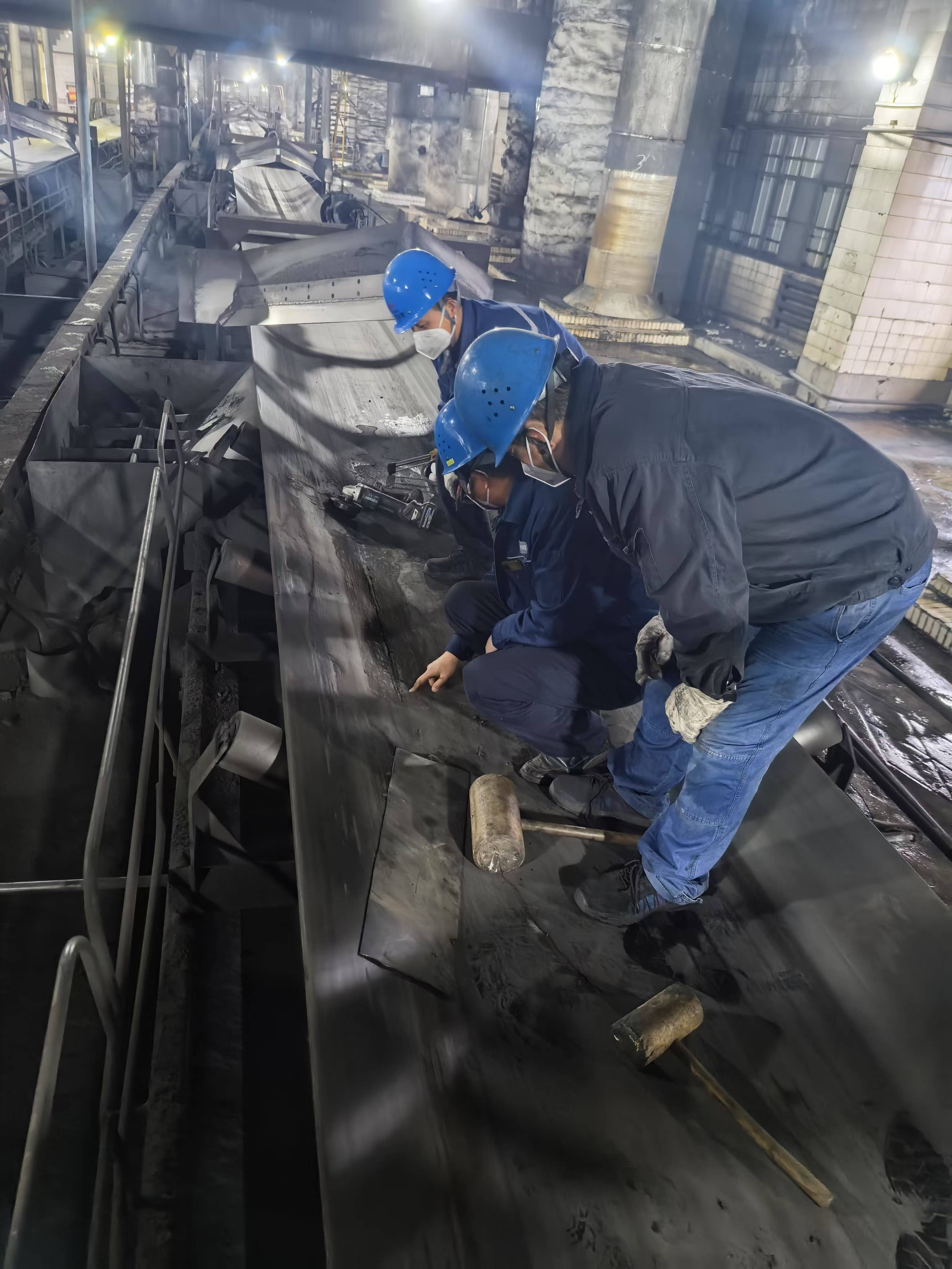 在輸煤運(yùn)輸線上,能經(jīng)??吹骄S護(hù)人員的工具包里裝著剪刀、卷尺、粉筆等工具,因此燃輸機(jī)修班全員得了個皮帶“土裁縫”的雅號。