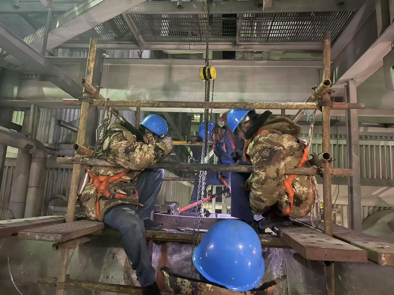 2024年12月24日,美鑫錦陽電廠#1機(jī)緊急停機(jī)。美鑫項目部立即組織人員全面排查,發(fā)現(xiàn)#1爐后豎井低再區(qū)域爐管泄漏。項目部迅速響應(yīng),第一時間召開搶修部署會,渭河、黃陵、富縣、麟北等兄弟項目部立刻派出精兵強(qiáng)將,火速支援。