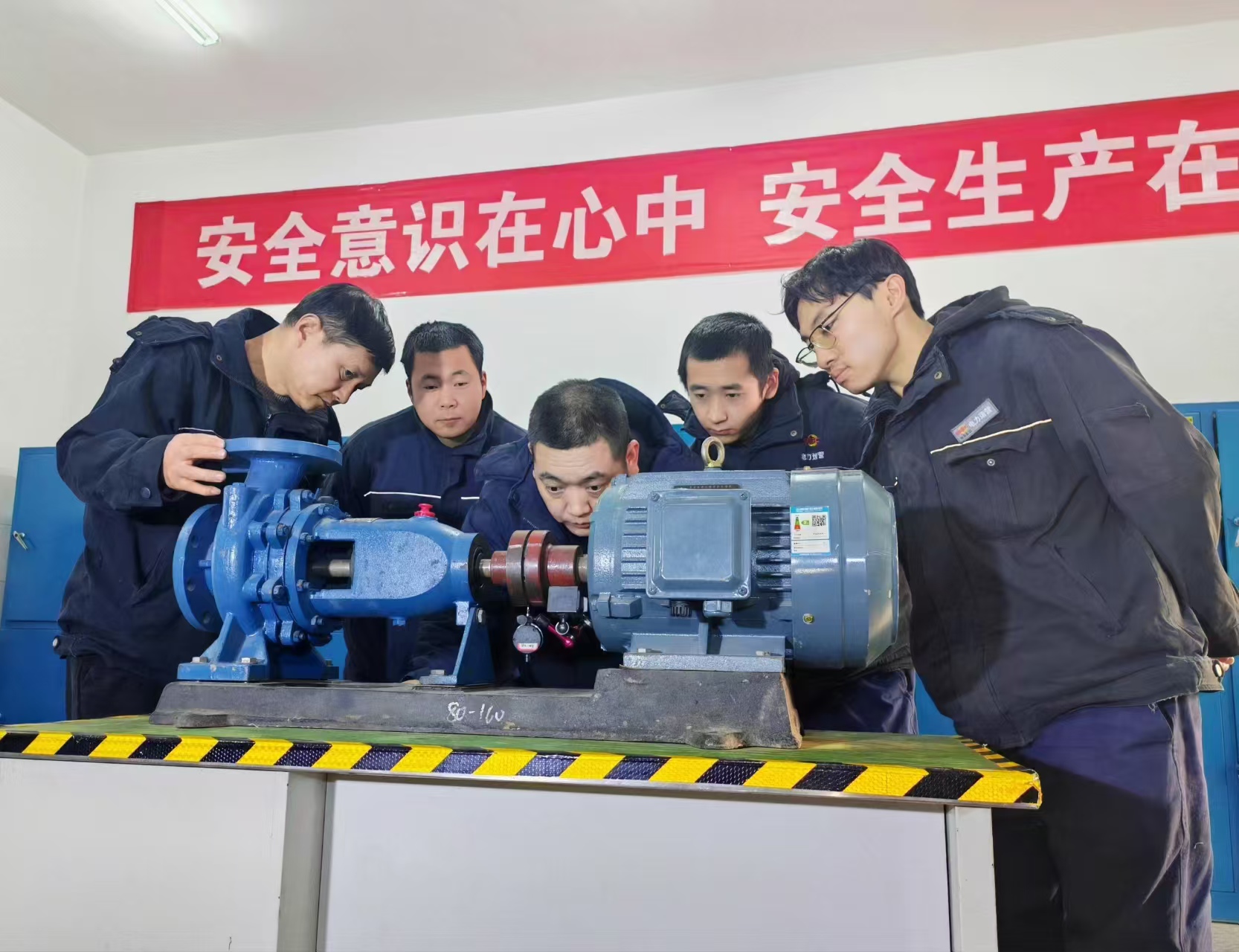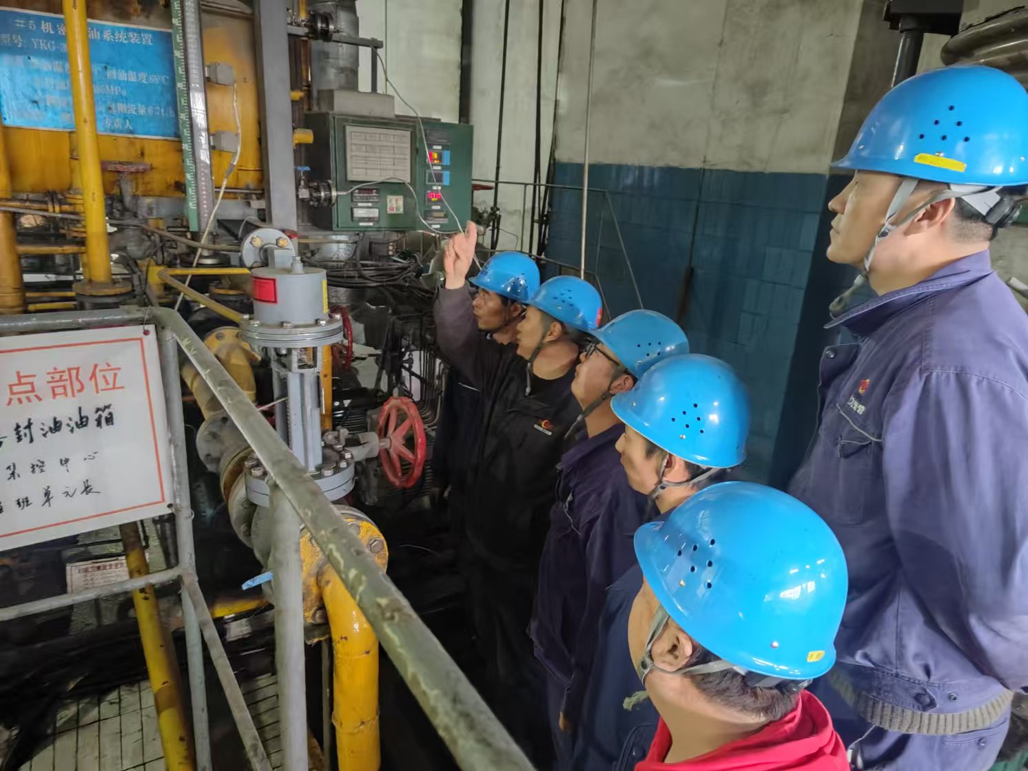 “根據(jù)偏差值,通過(guò)加減地腳螺栓墊片或用銅棒敲擊螺栓,對(duì)電機(jī)進(jìn)行相應(yīng)調(diào)整……”1月3日下午,主機(jī)班實(shí)操培訓(xùn)室里,“陜西省技術(shù)能手”陳濤正在演示轉(zhuǎn)機(jī)找正。