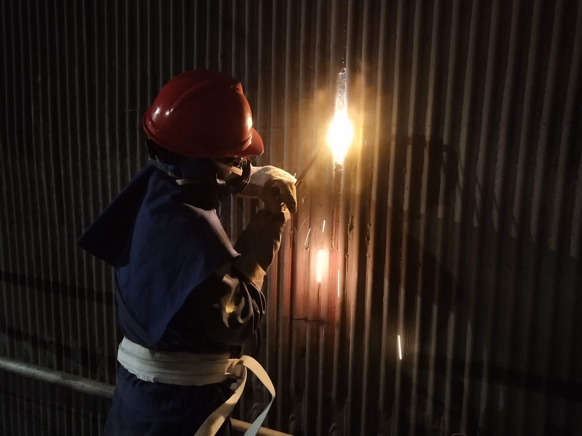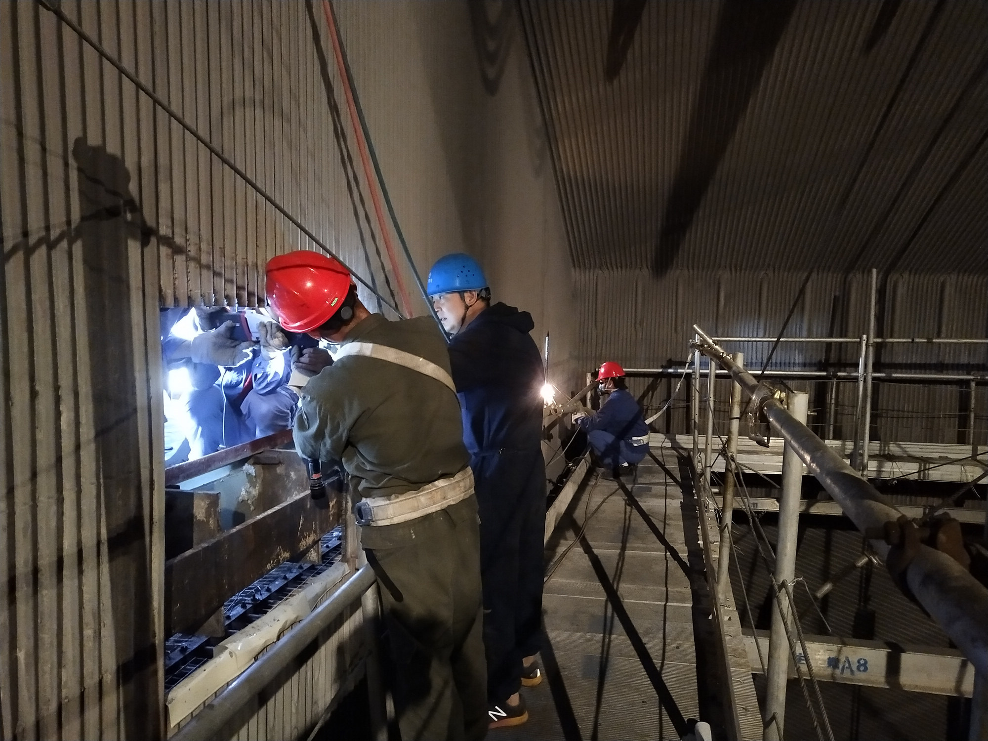6月7日端午節(jié),在萬家團(tuán)聚的日子,項(xiàng)目部鍋爐班開始了#2爐水冷壁66根管道更換的前期準(zhǔn)備工作。爐膛內(nèi),煤粉、保溫渣,夾雜著鐵屑飛揚(yáng)。工作人員站在距地面56米高的腳手架上切除水冷壁管、制水冷壁管坡口、磨鰭片、清除管壁內(nèi)外銹,各小組有條不紊地開展工作。至6月9日收假前,水冷壁管焊接前準(zhǔn)備工作已全部就緒,為節(jié)后焊接工作的順利開展,創(chuàng)造了條件。 (趙 濤 王武軍)