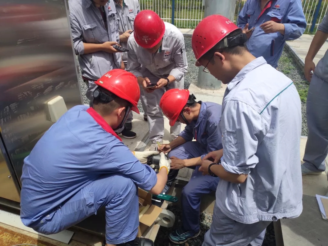 7月22日,電氣試驗中心人員趕赴商洛發(fā)電公司,利用新購置的德國威卡氣體密度繼電器校驗儀和氣體微水高精度測量儀對其在裝的GIS(氣體絕緣金屬封閉開關(guān)設(shè)備)氣室進行SF6(六氟化硫)密度繼電器校驗、微水測試以及氣體組分含量測試等試驗。面對新進的精密儀器,試驗人員邊學(xué)習,邊摸索,嚴格遵循國家標準和操作規(guī)程的檢測項目和周期,逐一對設(shè)備進行試驗,并對結(jié)果進行分析比對。