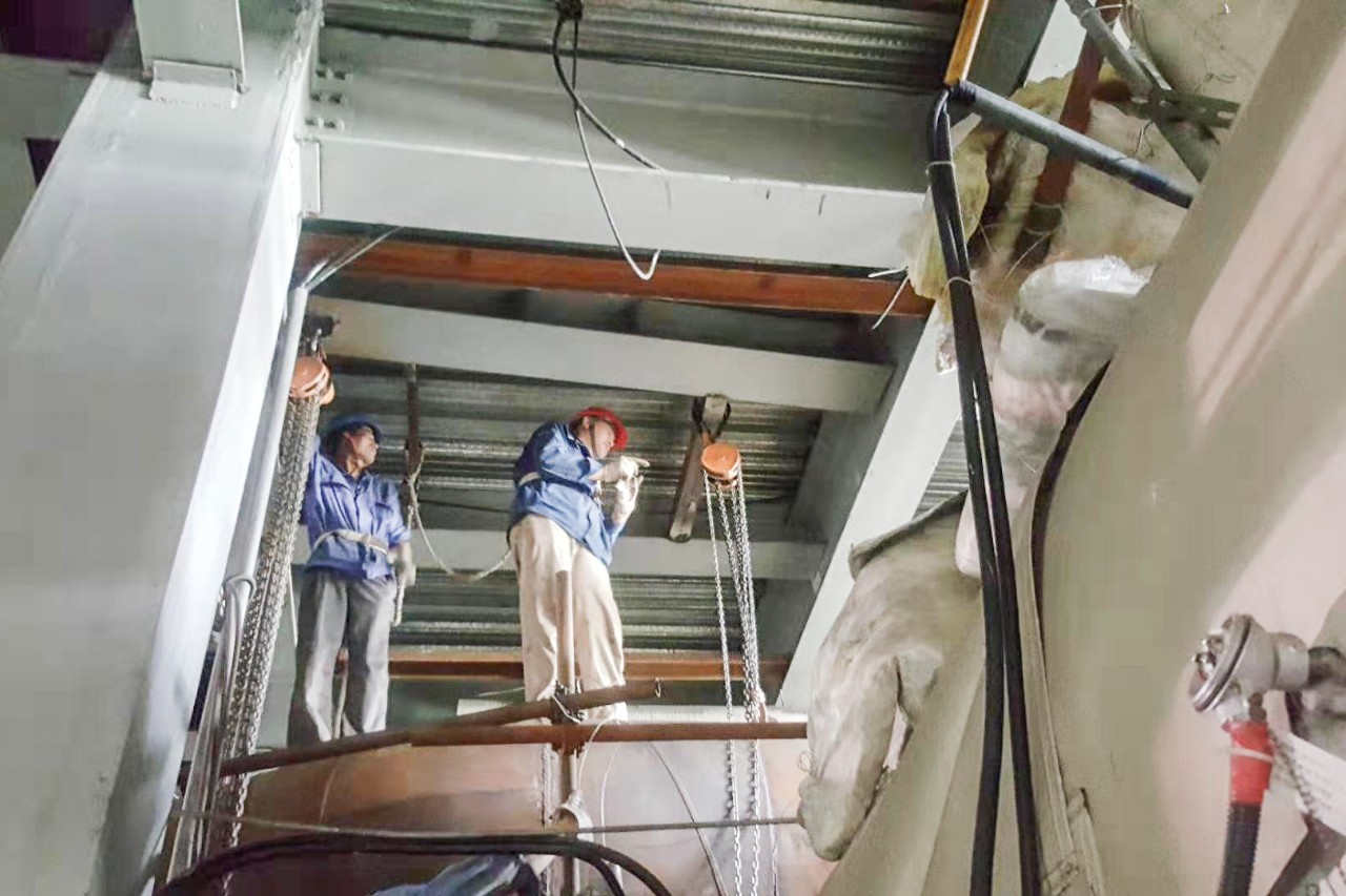 尖峰加熱器水側(cè)加裝出、入口門是此次大修的重點(diǎn)工作,需要在外徑920MM的管道上進(jìn)行斷口、制口,再將超過半噸重的閥門安裝到位,多工種交叉作業(yè),對安全和技術(shù)要求極高,工作難度極大。為此,項(xiàng)目部成立專門小組負(fù)責(zé)現(xiàn)場技術(shù)、安全工作,以便隨時掌握施工進(jìn)展,及時處理各種應(yīng)急情況。目前,此項(xiàng)工作正在緊張有序進(jìn)行當(dāng)中。