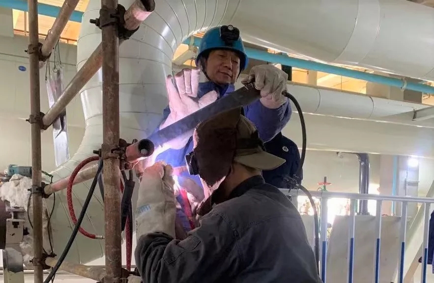 到達當天,全部人員馬不停蹄,即刻投入到緊張的檢修工作中。此次#1號機組的臨修,任務重、項目繁雜,除氧器取樣門焊口、爐送風機供氣母節(jié)漏點焊補、石膏旋流滲流管焊接……每一項任務都是難啃的“硬骨頭”,每一項工作都需要和多個專業(yè)協(xié)同進行,但大家沒有一絲懈怠,一直全身心進行工作,即使春節(jié)期間也沒有停工,每一名工作人員始終兢兢業(yè)業(yè),從預熱、焊接、到熱處理、射線檢測,每一個環(huán)節(jié)都做得一絲不茍、每一道工序都力求做到精益求精。