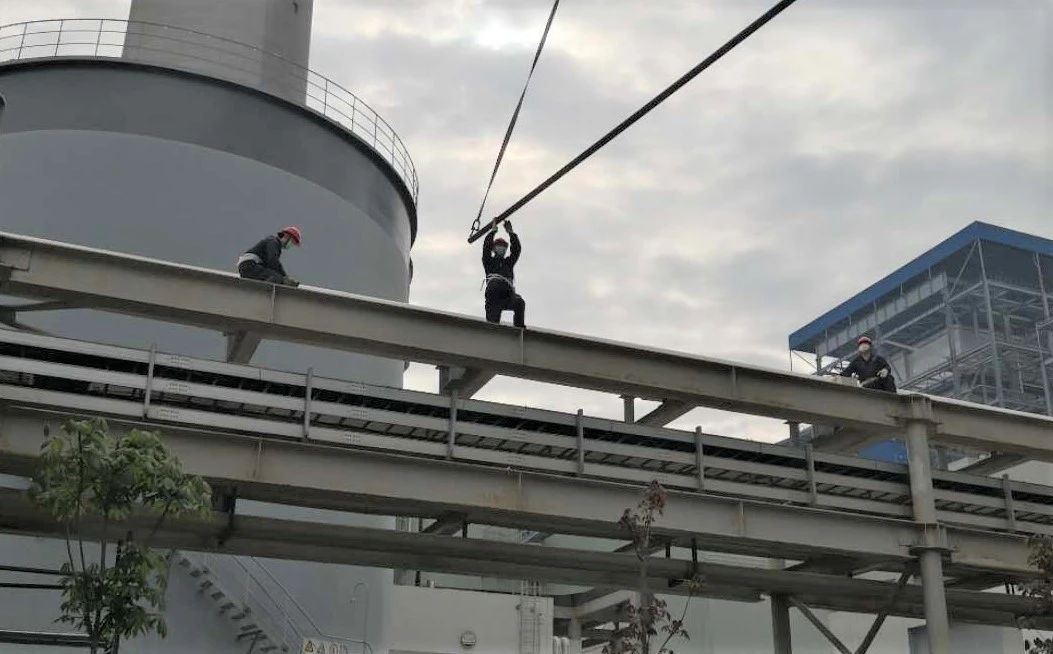 #1爐脫硫廢水改造施工現(xiàn)場(chǎng),鍋爐班人員站在5米高的綜合管架上,配合著吊車,正在進(jìn)行吊裝管道。此項(xiàng)工作屬高空作業(yè),工作現(xiàn)場(chǎng)又緊鄰氫氣管道,對(duì)作業(yè)安全等級(jí)要求異常嚴(yán)格。在消防隊(duì)的全程監(jiān)護(hù)下,工作人員各司其職,緊張而有序地進(jìn)行著工作。
