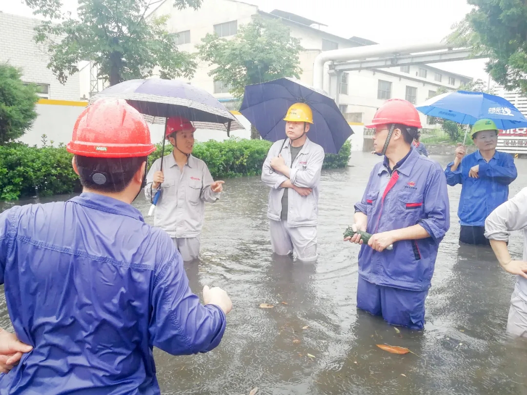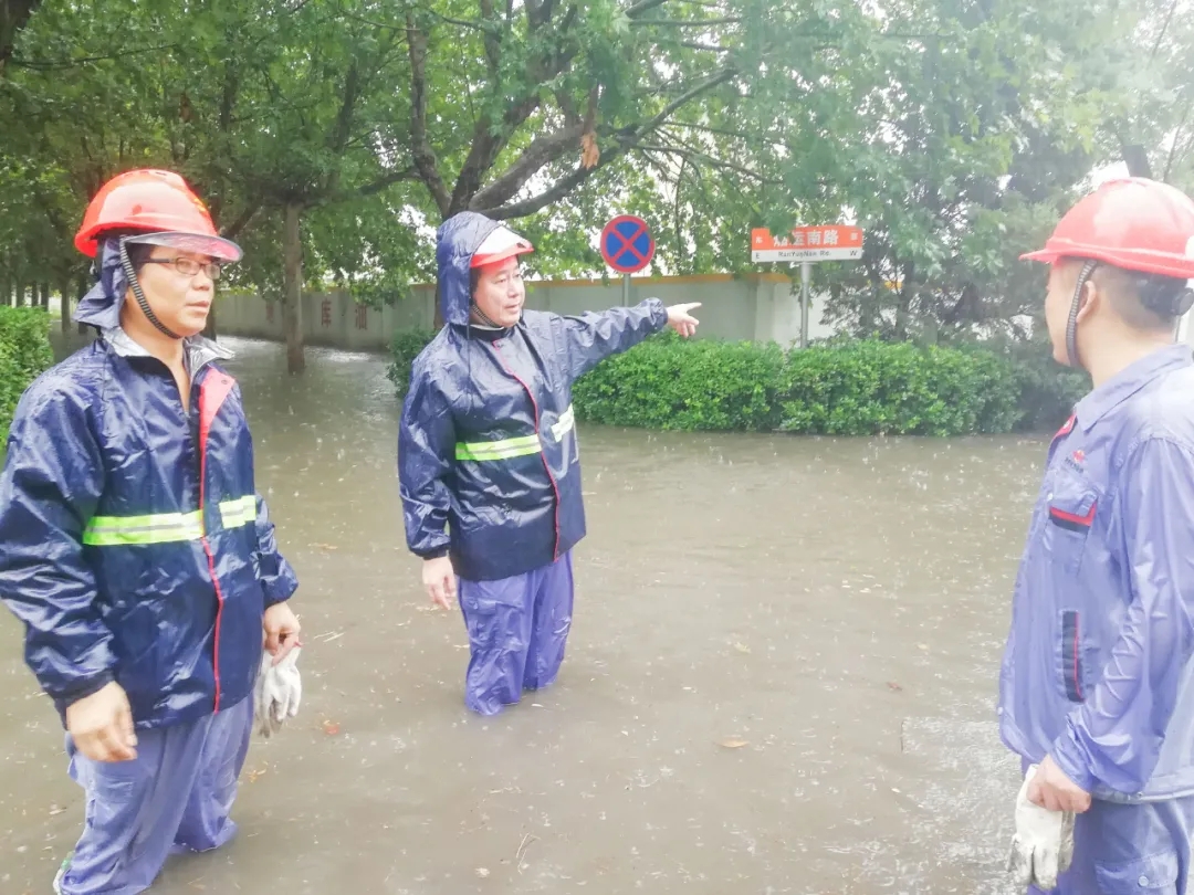 瓢潑大雨中,燃輸區(qū)域瞬間水深超過一米,項目部應(yīng)急小組成員來不及換上雨衣雨鞋,就跳入齊腰深的積水中,排查險情,疏通水道。
