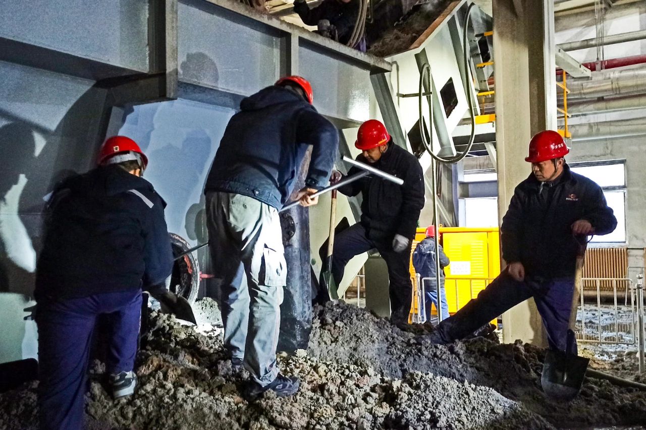 緊急關(guān)頭,清水川項目部立即出動灰硫二班及項目部全體管理人員投入清渣工作。零下十幾度的室外冷風(fēng)刺骨,室內(nèi)卻是一片熱火朝天的大干場面,鐵锨、耙子、捅條,“十八般”清渣工具全部排上用場,?挖、手刨、水沖,能想的辦法都用上,大家干得滿臉灰塵、汗流浹背,卻一刻也不停歇。